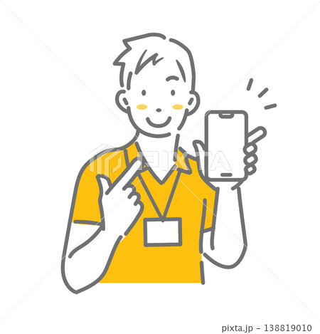 健身俱樂部教練指著智慧型手機螢幕——簡潔時尚的線條畫插圖。