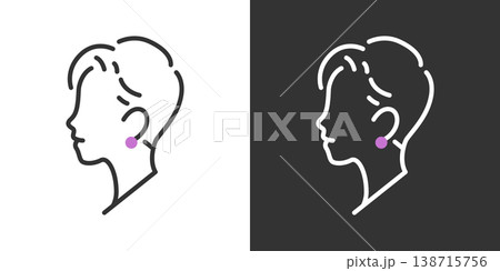 閉眼女性與睜眼女性的臉正面特寫插畫集單色短髮