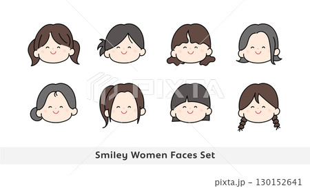 一組不同髮型的年輕女性微笑頭像圖標