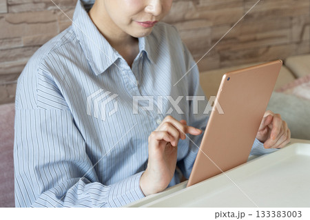 一名女子在房間裡使用平板電腦 [部分內容已刪除]