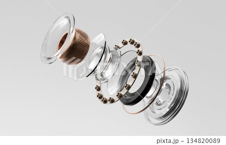Exploded View of Mobile Device Camera Lens Components. 3D Rendering.