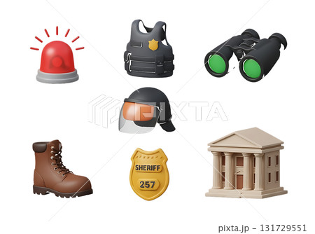 Security and Law Enforcement Themed 3D Icons on White Background police sheriff isolated on a transparent background