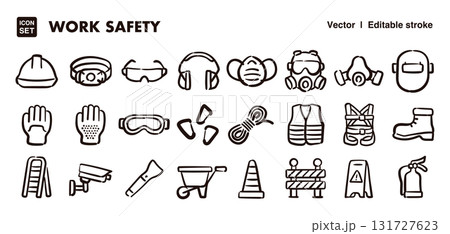 手繪圖示插圖集,包括工作安全工具。 EPS 版本可編輯以變更線條粗細等。