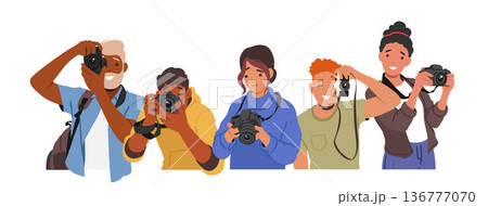Characters Capturing Moments With Photo Cameras. Holding And Adjusting Settings, Framing Shots, And Capturing Images