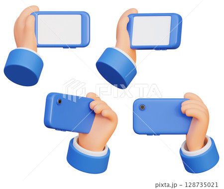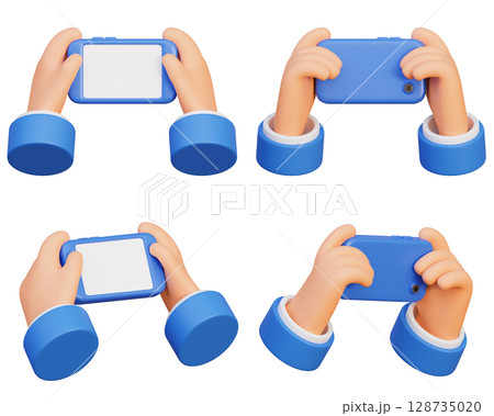 Holding the phone horizontally with both hands cartoon style 3D graphic