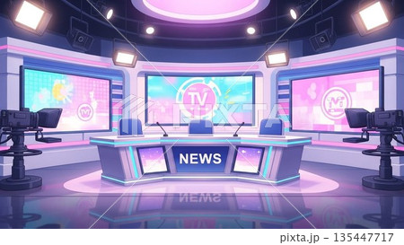 Set Of Characters Participate In Captivating Tv Show. Anchorpersons, Journalists, Guests Communicate In Vibrant Studio