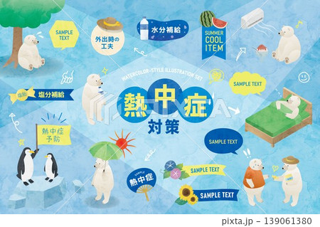 防暑圖示集/夏季健康措施插圖素材(防暑