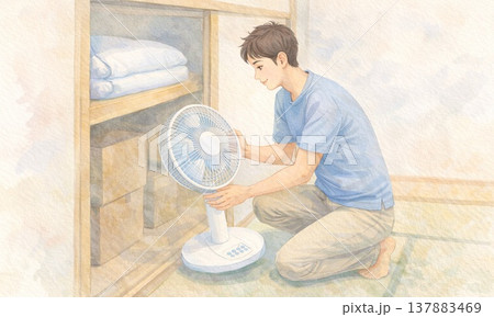 夏日來臨前的一天:從儲藏室拿出電扇,準備迎接夏日的到來。