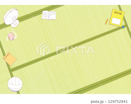 一家人在夏天的日式房間內共度美好時光的插圖(回家)