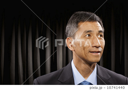 USA, Utah, Provo, Businessman standing in front of black curtain
