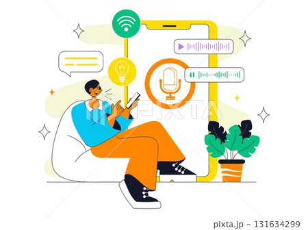 Voice Assistant Smart Devices Illustration Featuring Voice-Activated Digital Technology for Enhancing User Interaction Through Speech Recognition
