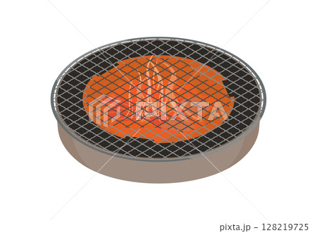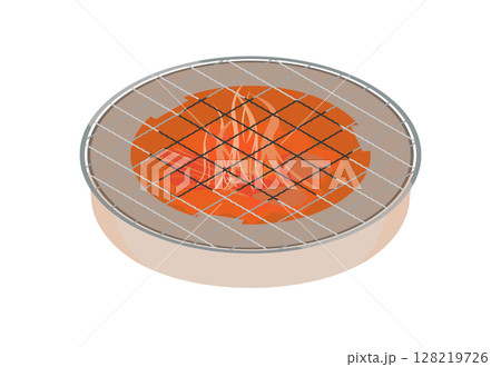 放置在加熱的木炭烤架上的圓形烤架的插圖