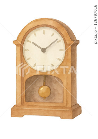復古木製擺鐘水彩畫(透明背景)
