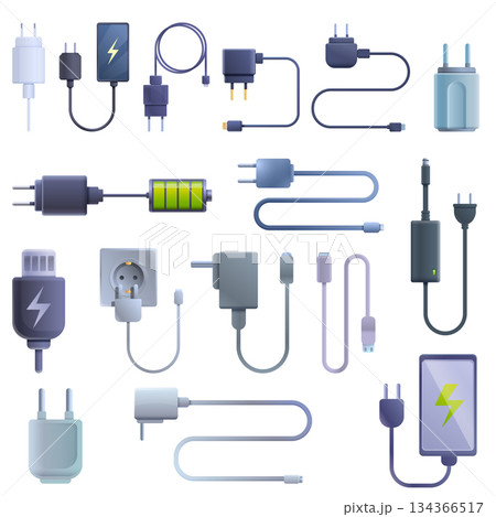 Charger icons set, cartoon style