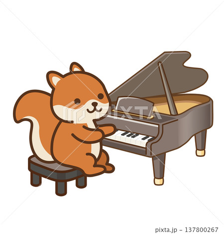 可愛的松鼠彈鋼琴插圖 | 適合兒童(幼兒園、學前班、小學)