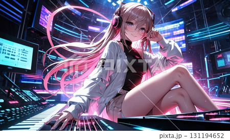 奇幻的宇宙背景,鋼琴鍵上舞動的音符-一幅音樂畫面。標籤:
