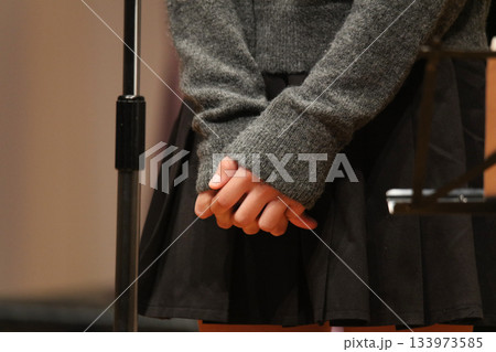 一名女高中生在音樂室彈鋼琴,這是用長焦距鏡頭從校舍外面的窗戶拍攝的