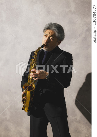 一名中年男子正在檢查薩克斯風。鑑定師、修理工、儀器工匠