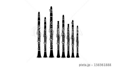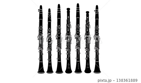 Black Solid Tribal Wind Instrument Silhouettes Set of Six on White Background