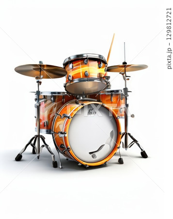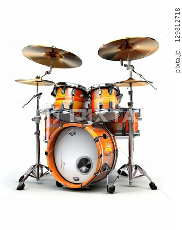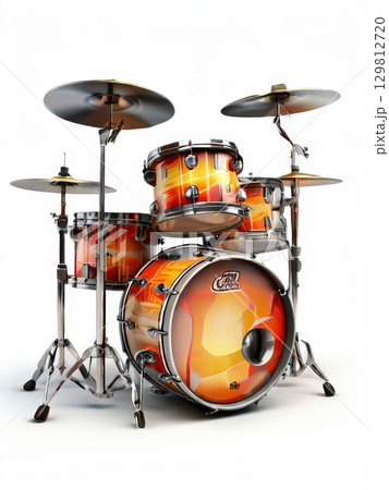 an AI Image Generator, Orange Drum Set Isolated on White Background with Cymbals and Hardware