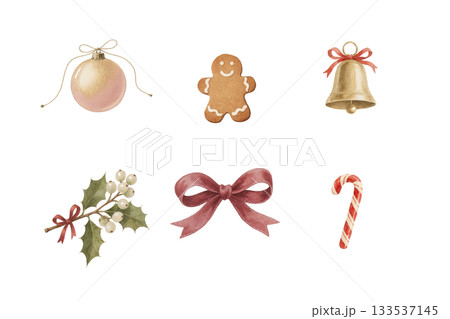 水彩復古聖誕裝飾品套裝(6 件裝)(AI)