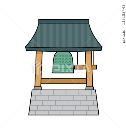 寺廟鐘樓的手繪插圖(佛教活動、除夕鐘聲)