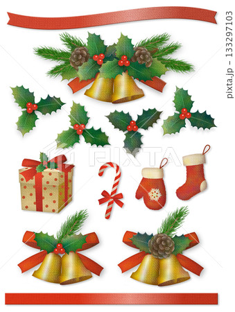 帶有紅色絲帶的鈴鐺的向量插圖_聖誕節和冬季材料