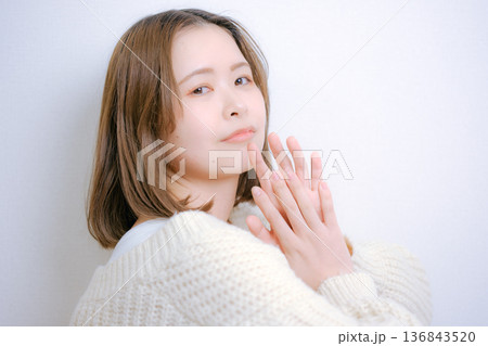 穿白色針織衫的女人
