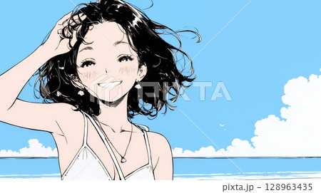 暑假出去玩的女孩,有線條
