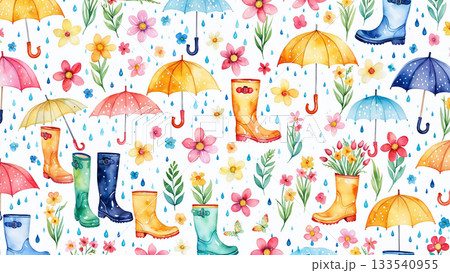 用色彩鮮豔的雨傘和水彩畫風的雨靴來享受雨季吧!