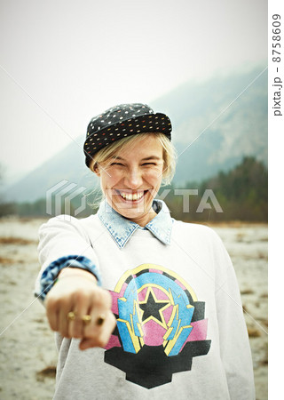 Young woman wearing cap, smiling