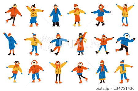 一組身著色彩鮮豔冬裝的人物插畫