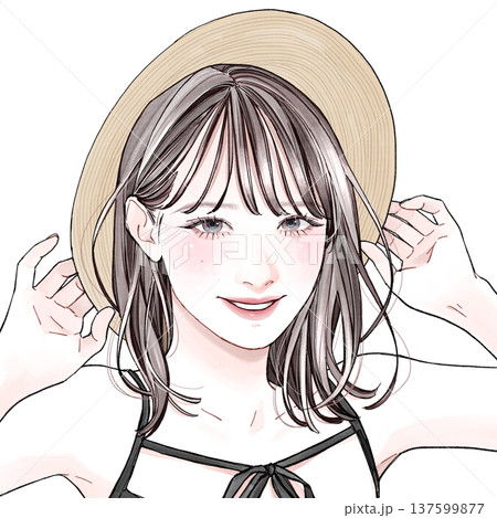 美優系列:夏日陽光下戴帽子的女孩繪本風格
