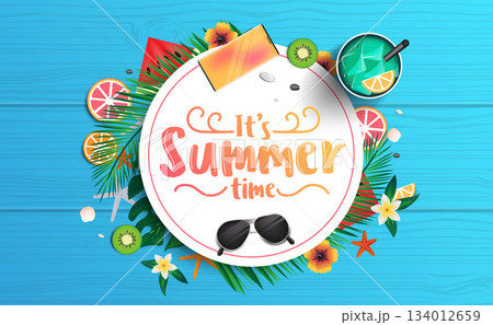 Tropical Summer Seamless Pattern with Beach Elements in Cartoon Flat Style Illustration