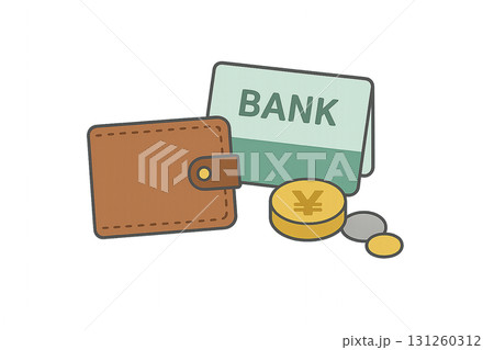 錢包和存錢筒插圖(家庭財務、儲蓄、資金管理)/水彩風格素材