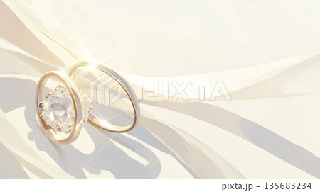 兩枚戒指被夢幻般的光芒包裹 / 浪漫的圖案象徵著愛與永恆