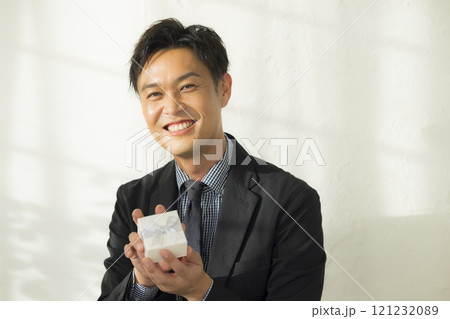 一個男人帶著禮物