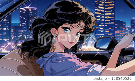 以 1980 年代都市流行文化為主題的女性和汽車時尚插畫,展現了精緻的都市風格。