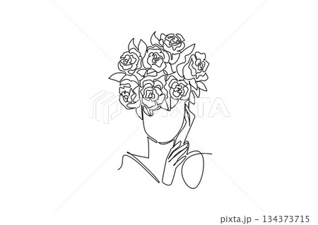 One line drawing portrays a woman with roses crown on her head for National Red Rose Day, blending art concept, beauty, and floral symbolism to express elegance and feminine charm in minimalist form.