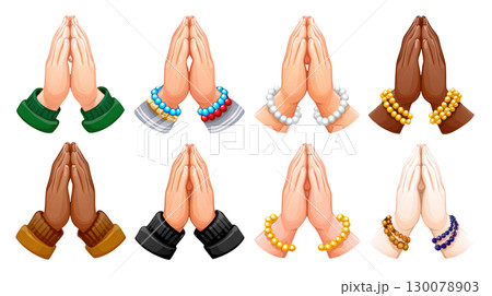 Diverse Hands in Prayer Pose with Colorful Bracelets Symbolizing Unity and Spirituality Across Cultures