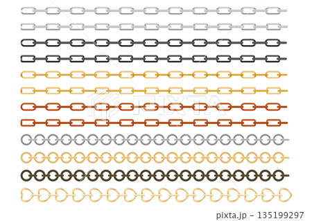 背景是各種形狀和顏色的金屬鏈條水平排列而成。