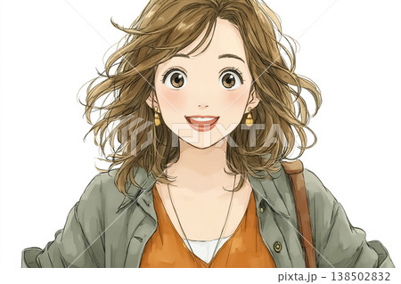 美優系列:一位笑容燦爛、神采奕奕的年輕女商人的上半身插圖。