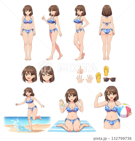 穿著泳衣、比基尼曬黑前後各種姿勢的逼真年輕女性插圖集 07