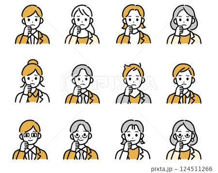40 多歲和 50 多歲有思想的商人:簡單而時尚的線條畫插圖