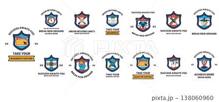 Blue and gold shields display motivational phrases