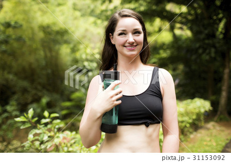 Caribbean Islands, Saint Lucia, woman with bottle of water