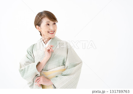 一個穿著和服的年輕女子拿著一把日本雨傘