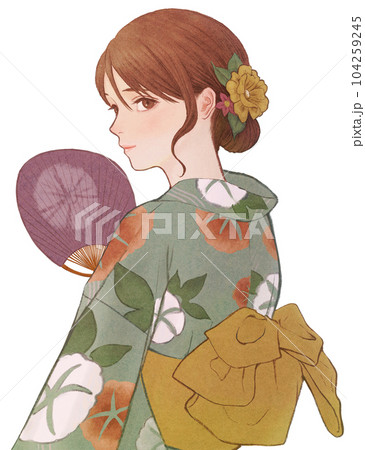 側邊長袖和服女插畫單人(帶妝)無季節無背景