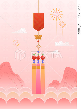 中國新年、農曆新年、新年慶祝橫幅、背景(煙火、中國風設計)