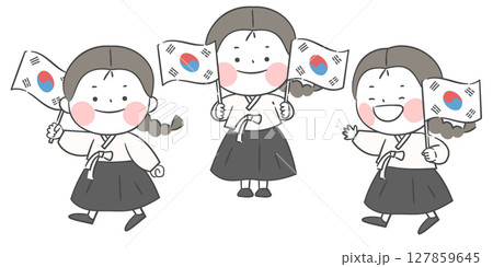 An illustration of a girl holding the Korean national flag